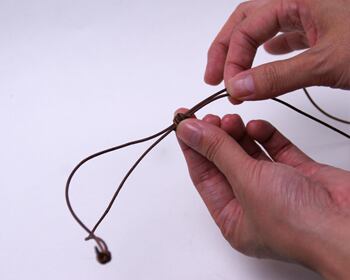 革紐全長85センチ。結び目があり、2つに折り曲げるので、40センチ位の長さになります。サイズは結び目で調節可能です。厚み15ミリ。