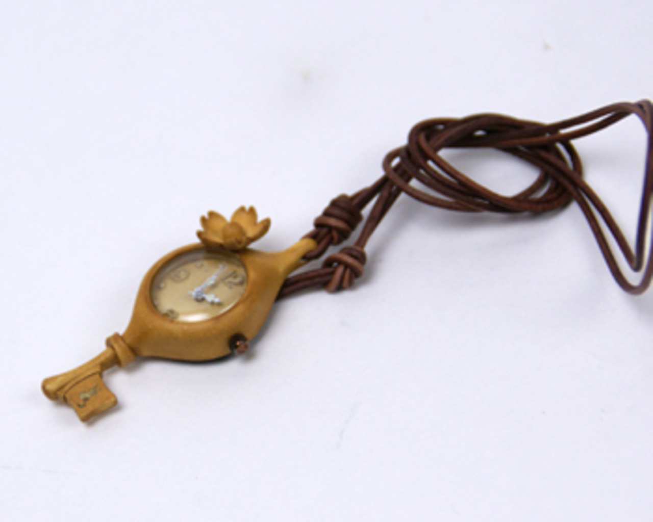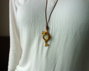 一輪の花がついた可憐な花の鍵時計ネックレス。
