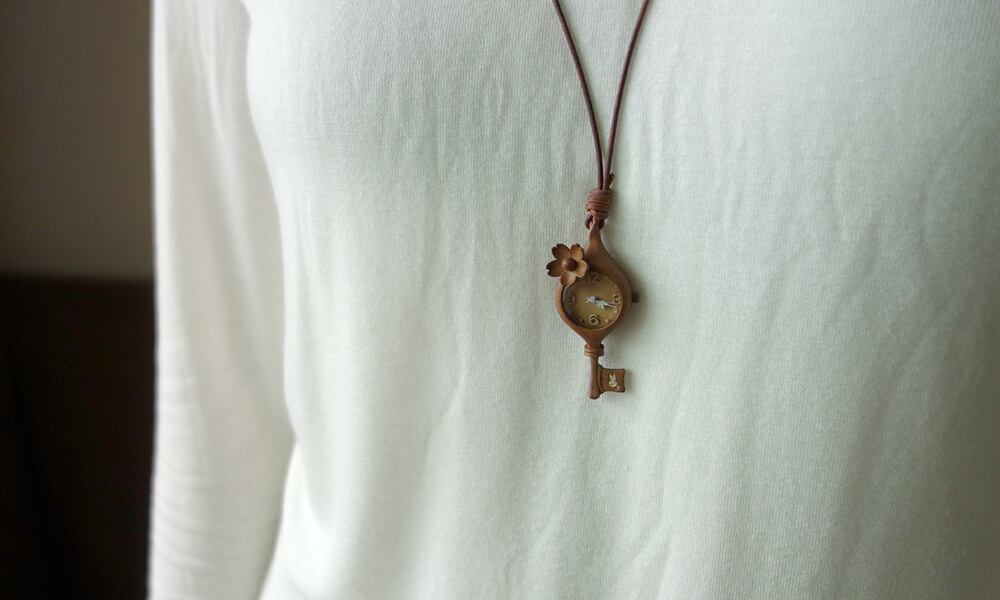 ネックレスとして、もしくは、バッグなどにつけたり、机においたりなど、時計小物として、色々な楽しみ方が出来ます。