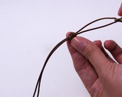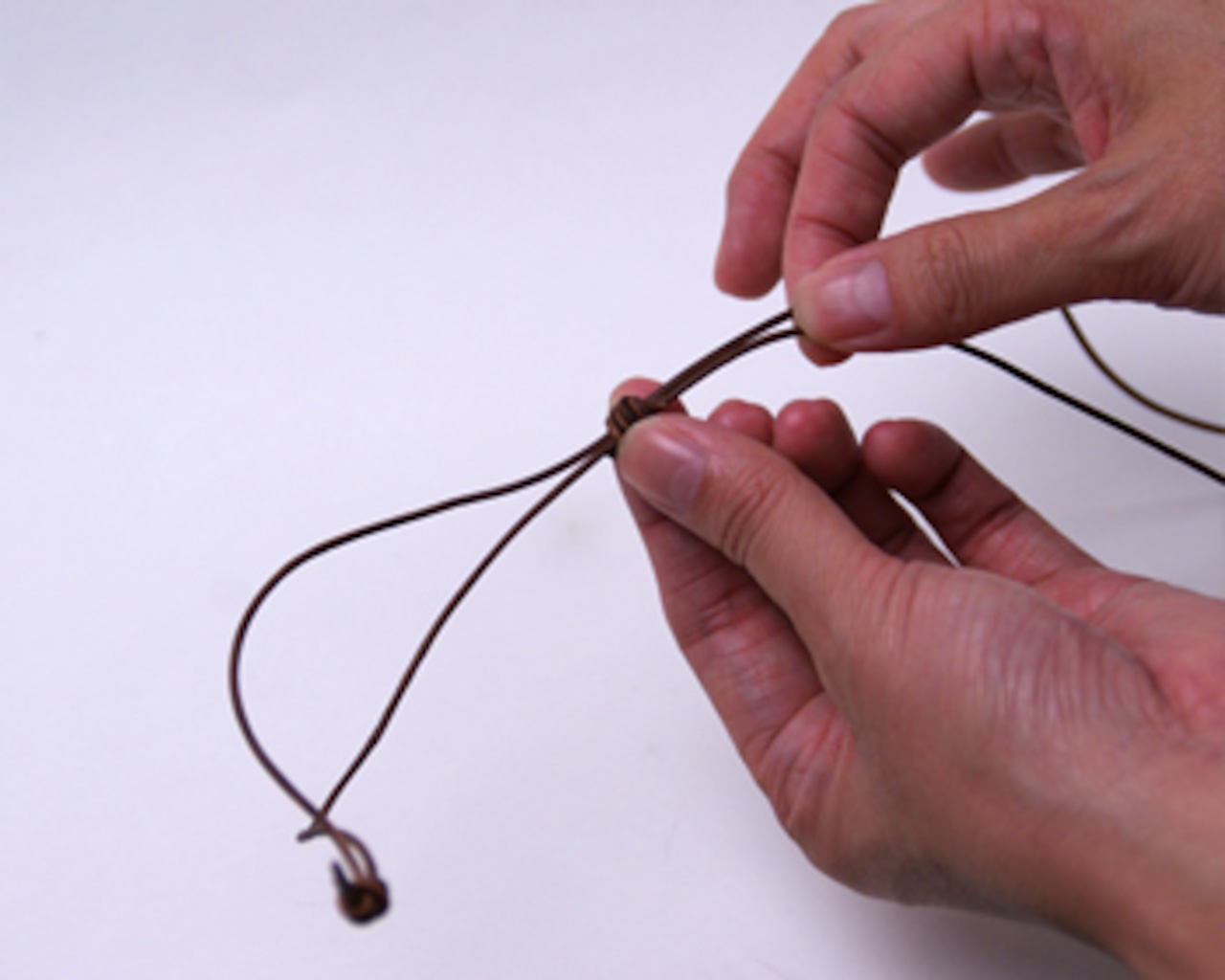革紐全長85センチ。結び目があり、2つに折り曲げるので、40センチ位の長さになります。サイズは結び目で調節可能です。厚み15ミリ。