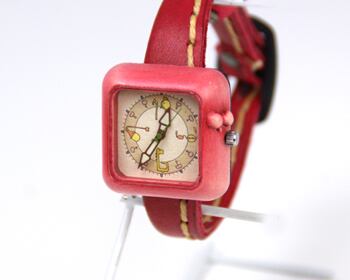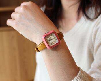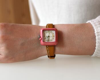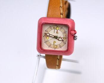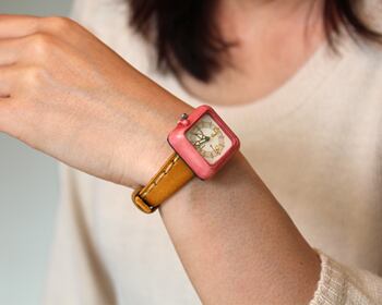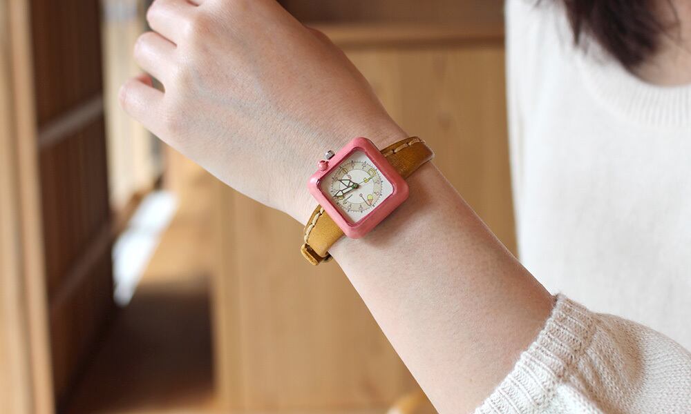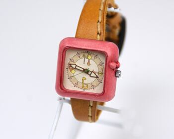 Kotolu:ピンク:古道具たちがつくった,あたたかみのある腕時計:くるき亭のオリジナルデザインの時計