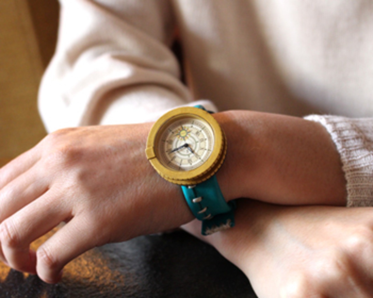 今回、この時計には、主に「空色」を合わせて撮影しました。