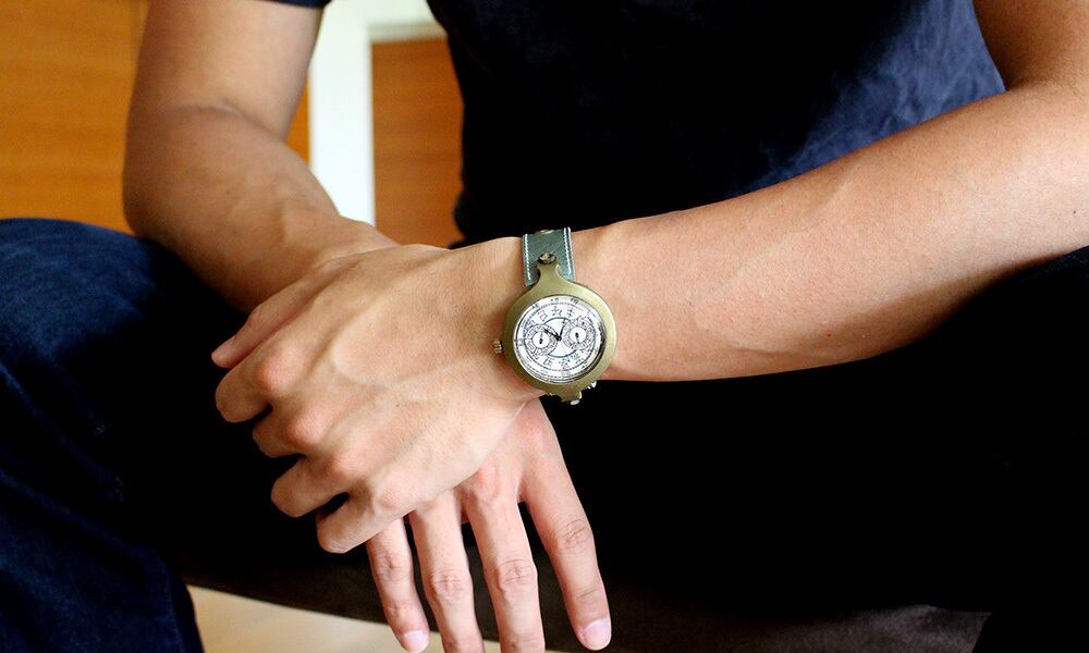 まだ飛行機が発明されて間もない頃、パイロットがしていた腕時計がコンセプトの「Pairo」は、まるで飛行機の計器のような、アナログ針での曜日や日付表示がついたマルチな機能をもつ腕時計です。