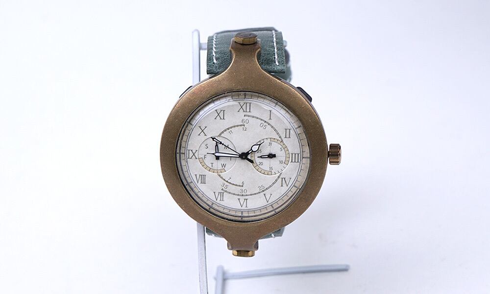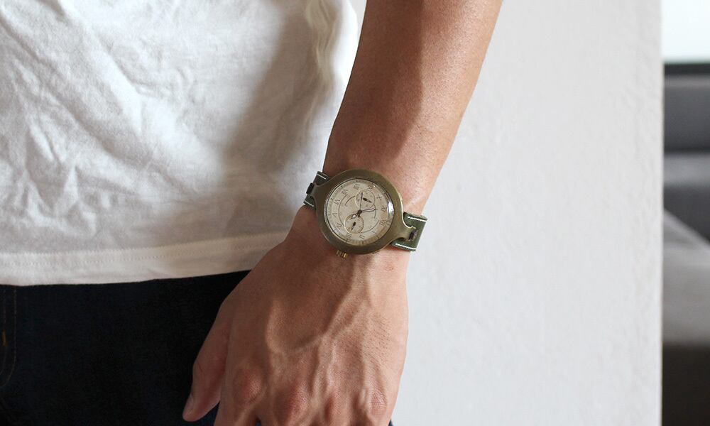 飛行機の計器のような、アナログ針での曜日や日付表示がついたマルチな機能はそのままに、スマートに進化した「Pairo」は、その個性的ながらスタイリッシュな雰囲気に、少しハンドメイド感を残した外見で、お仕事でも、カジュアルでも、どんなシーンでも使えると人気の時計です。