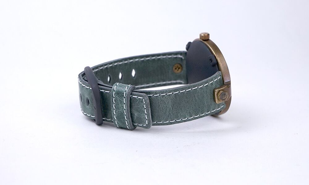 「撮影に使用したベルトの種類」・・・今回、この時計には、「プレミアムグリーン」を合わせて撮影しました。