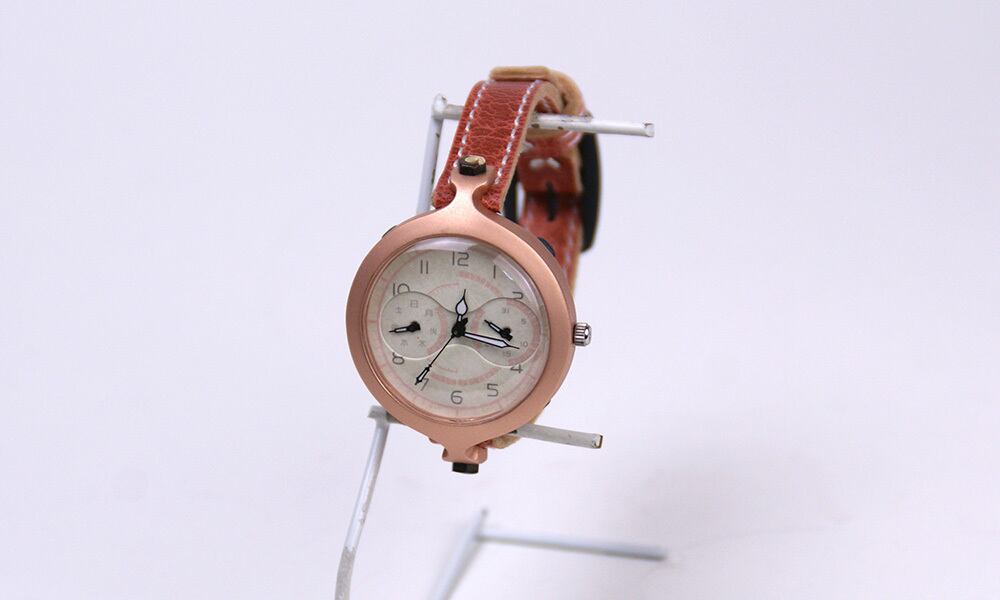 「時計本体」・・・少し小さめの女性用であまり無い大きさの腕時計です。女性用で開発しましたが、小さめの時計がお好きな男性にもオススメできます。
