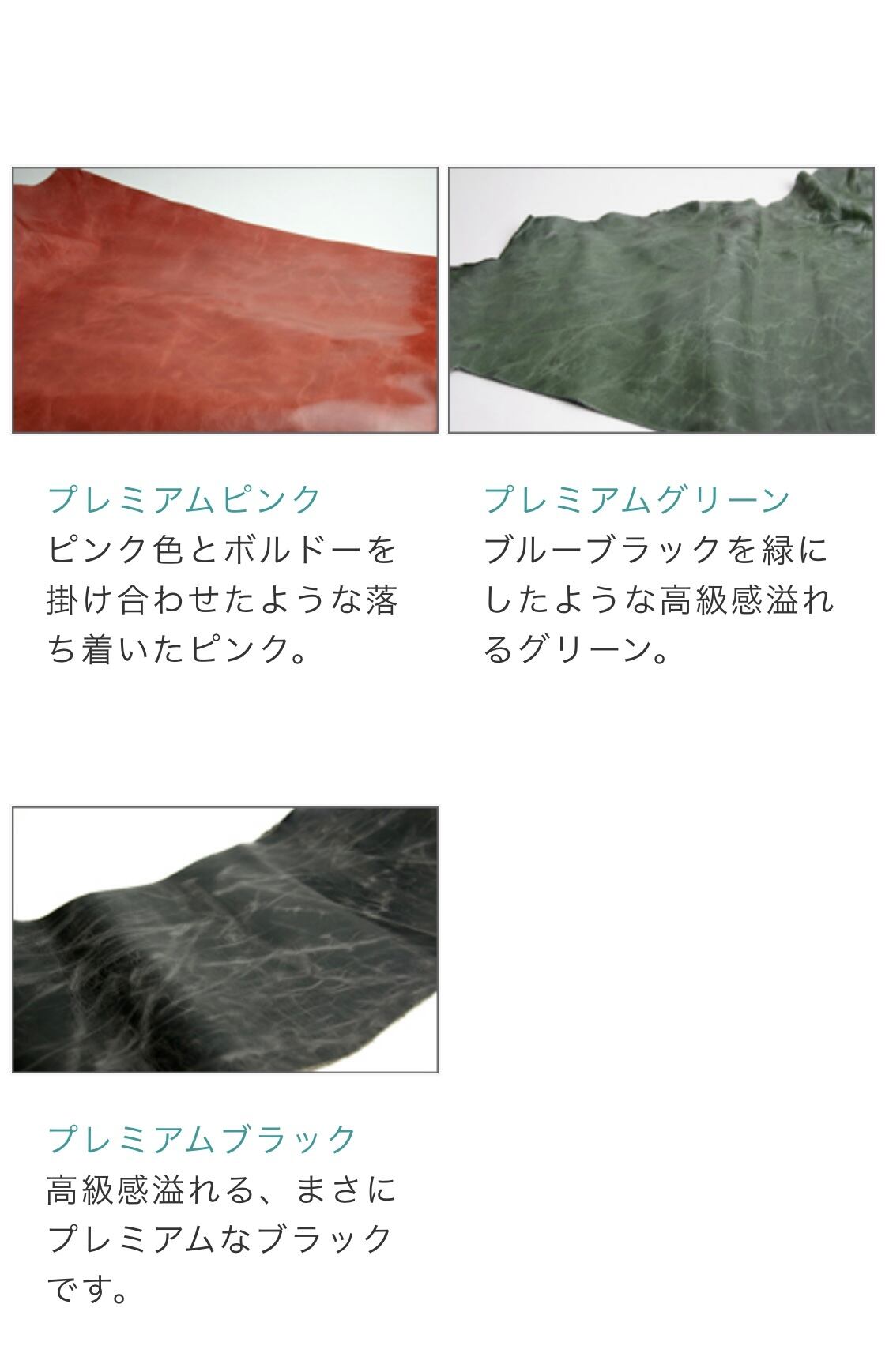 上の仕様の素材欄に記載の他に、防水用のグリスや、樹脂等を使用したり、マットスプレー等のスプレーを噴霧したりしています。また、革に塗る塗料なども使用しています。