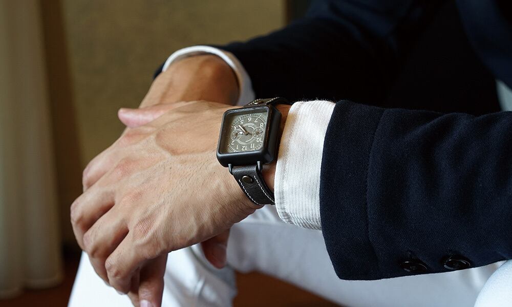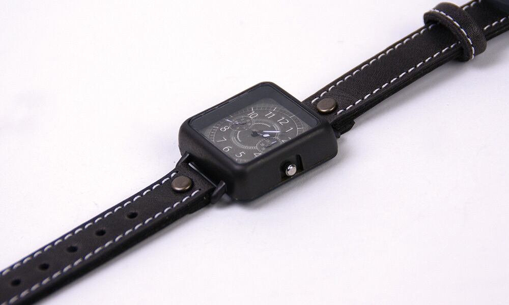 「時計本体」・・・正方形の角丸デザインです。男性でも女性でもつけられる大きさとなっています。