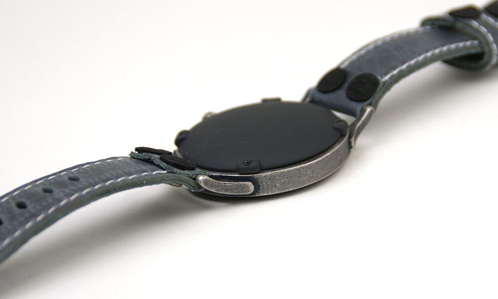 「裏蓋」・・・裏蓋は、金属で制作したあと、腕に直接多く触れる箇所なので、塗装を施しています。色は消墨色で日本の伝統色で仕上げました。