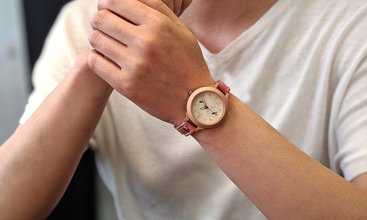 「katikoti mini」の時計本体に、一番人気の「Pairo mini:ピンクゴールド」の文字盤を合わせた特別バージョンです。