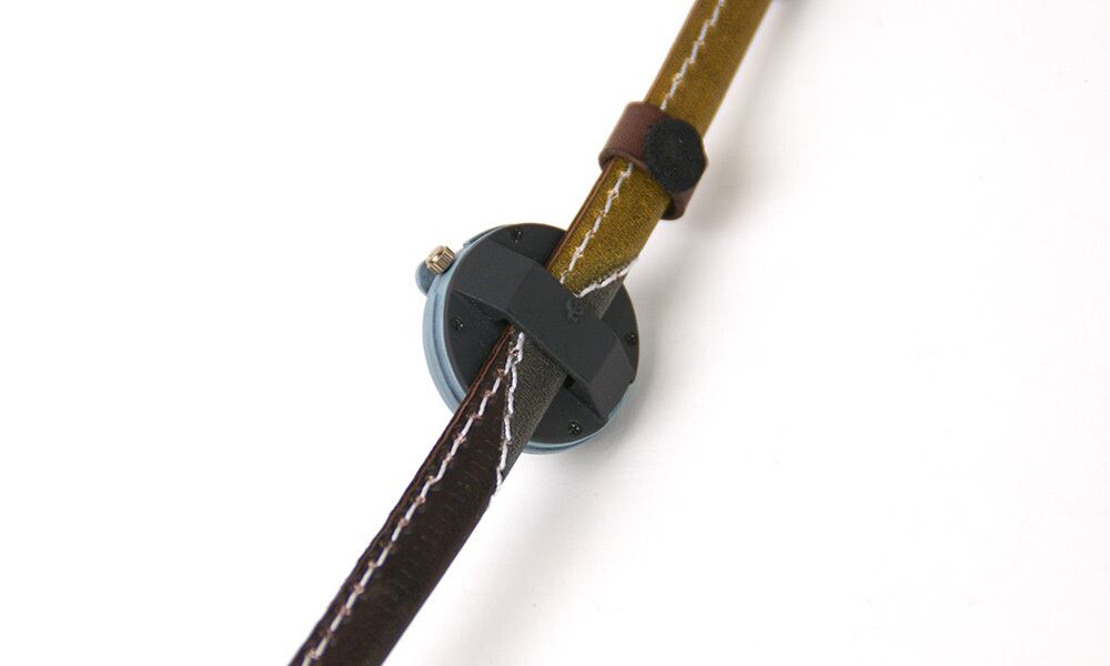 最後に「mocoboat」が手縫いであるのと比較して、「mocomini」はミシン縫いステッチにしています。小さい時計ということと、革幅がせまいことから、手縫いよりも、ミシンステッチの方が合うと判断しました。