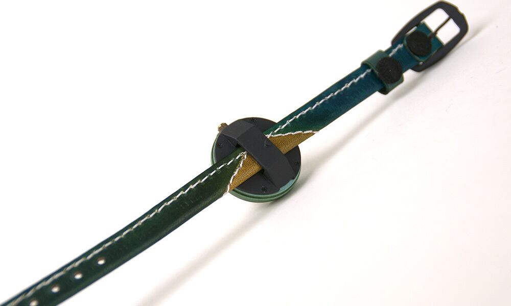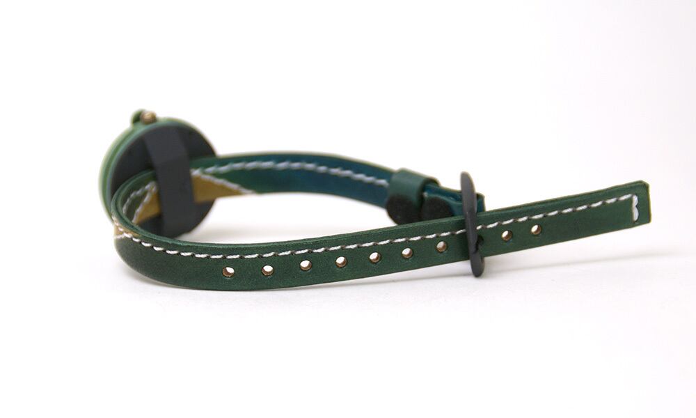 最後に「mocoboat」が手縫いであるのと比較して、「mocomini」はミシン縫いステッチにしています。小さい時計ということと、革幅がせまいことから、手縫いよりも、ミシンステッチの方が合うと判断しました。