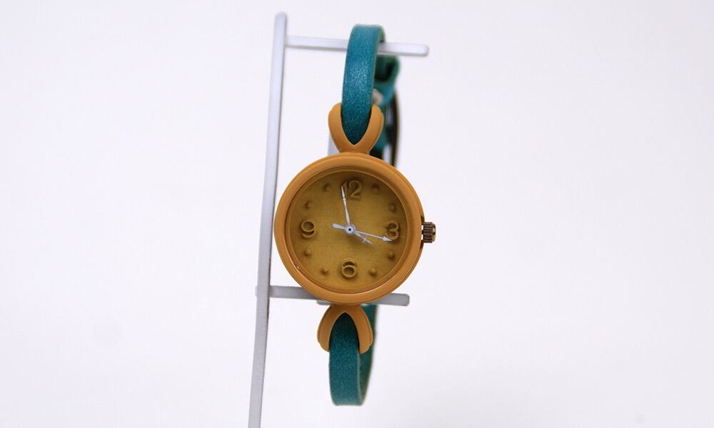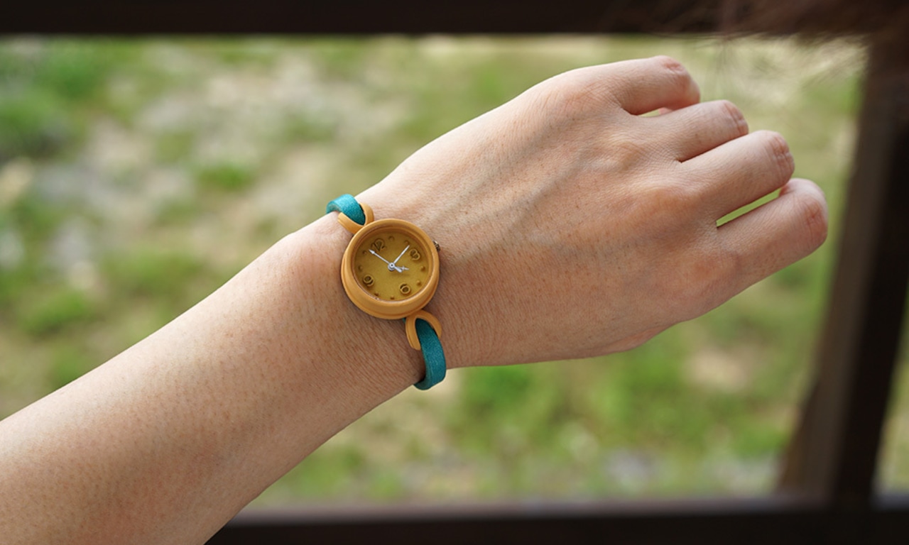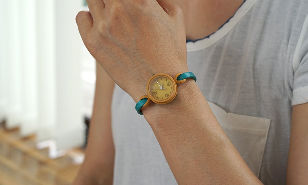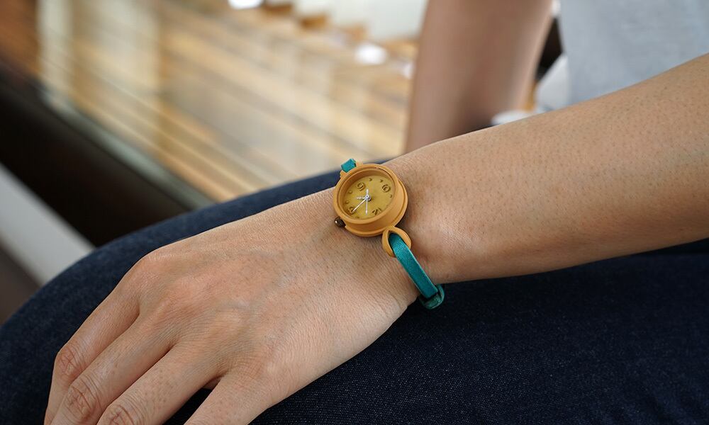 「時計本体」・・・キャンディーの包み紙に見立てた時計の本体は、少し濃い目のイエロー:ダークイエローに塗られています。