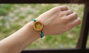 写真は女性が着けています。シンプルなデザインなので、シーンを選ばず、つけられます。
