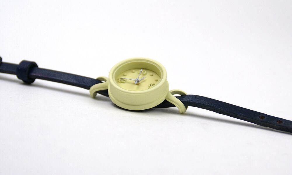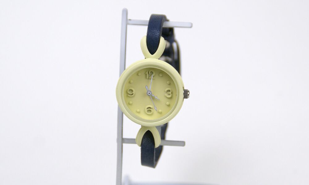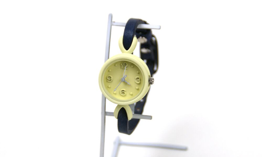 「時計本体」・・・キャンディーの包み紙に見立てた時計の本体は、少し濃い目のイエロー:ダークイエローに塗られています。