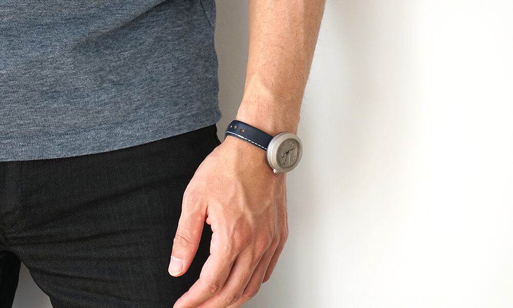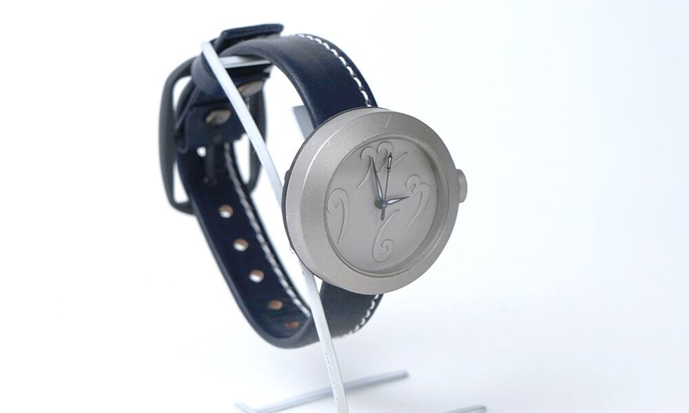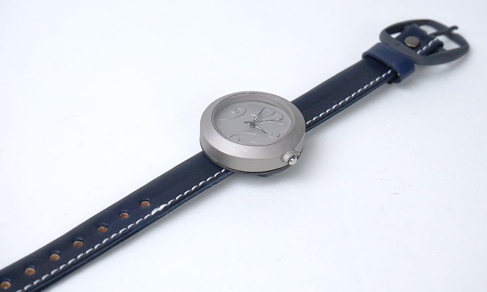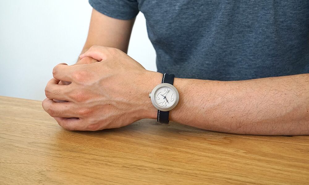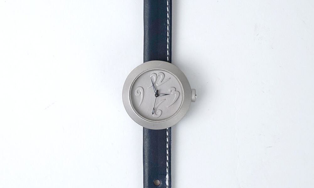 余計な装飾を無くした潔さを感じるミニマムデザインの時計本体に、日本刀で切った風のようなオリジナルフォントの文字盤を合わせた腕時計。