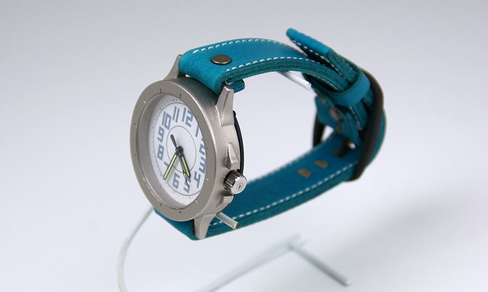 「撮影に使用したベルトの種類」・・・今回、この時計には、「空色」を合わせて撮影しました。