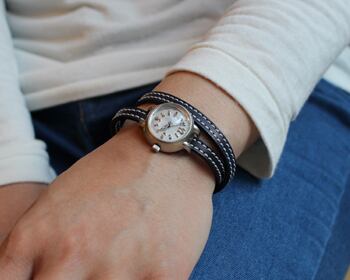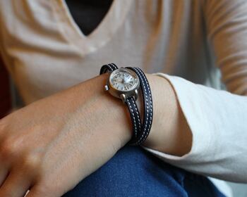 ベルトは幅7ミリの細めの革にステッチを入れ、2重巻きに仕上げました。