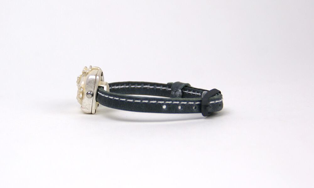ステッチは高級感の出る白色です。固定です。