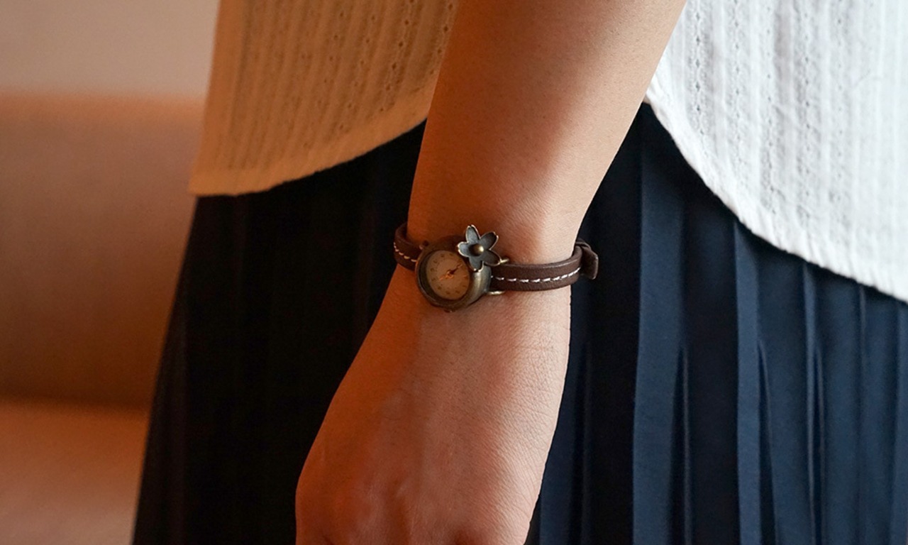 くるき亭の時計の中でもロングセラーの可愛い腕時計で、アクセサリー感覚で楽しめる時計です。