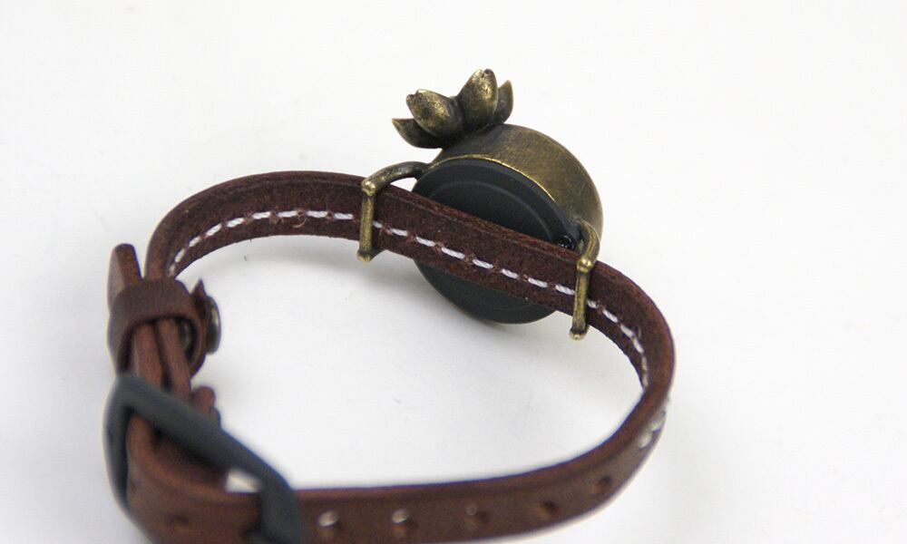 「時計本体」・・・一輪の桜が咲いた可憐な時計本体です。角を丸めることで、着けていても痛くないように工夫しています。